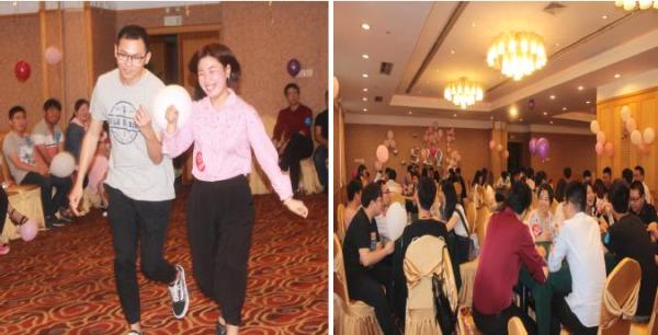 活動(dòng)現(xiàn)場(chǎng),浪漫的粉色氣球拍照區(qū)、巨大的粉色表白墻顯得格外引人矚目。持續(xù)4 個(gè)多小時(shí)的聯(lián)誼活動(dòng),流程安排相當(dāng)緊湊。“創(chuàng)意團(tuán)隊(duì)展示”、“串名字游戲”、“夾氣球”等環(huán)節(jié),不一而足。大部分的單身青年男女都是第一次參加聯(lián)誼活動(dòng),既感到新鮮刺激又感到靦腆羞澀。聯(lián)誼會(huì)剛開始,他們只是靜坐,后來看到活動(dòng)逐漸活躍,也紛紛加入互動(dòng)游戲、交流中。隨著各種游戲以及歌舞的穿插互動(dòng),讓現(xiàn)場(chǎng)的熱烈氣氛指數(shù)不斷爆表,單身青年們打開相識(shí)之門,交談甚歡?;顒?dòng)結(jié)束后,不少單身男女嘉賓互相留號(hào)碼、相約吃夜宵,以進(jìn)一步交流。