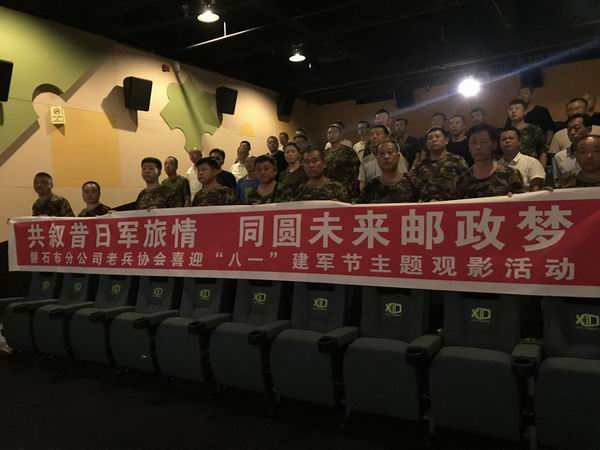為慶祝中國人民解放軍建軍九十一周年,重溫艱苦奮斗的紅色歷史,共敘軍旅生涯的愛國情懷,8月1日,磐石市分公司開展以“共敘昔日軍旅情,同圓未來郵政夢”為主題的慶“八一”建軍節(jié)活動,組織了69名復轉(zhuǎn)軍人員工來到影院觀看電影《浴血廣昌》。通過本次活動,激發(fā)復轉(zhuǎn)軍人員工充分發(fā)揚吃苦在前、享樂在后的奉獻精神,面對經(jīng)營發(fā)展的困難全力以赴,共同為磐石市分公司“再前再上、更富更強”的郵政夢而不懈奮斗。(吉林郵政工會)