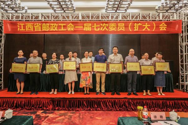 省分公司黨組成員、副總經(jīng)理、工會主席戴書華,省郵政工會副主席胡萍,省郵政工會副主席、省郵政速遞物流工會主席徐夢奇,省郵政工會副主席、省郵儲銀行工會主席劉承亞,省郵政工會常務(wù)委員、省分公司資深經(jīng)理、人力資源部總經(jīng)理熊全水,省郵政工會常務(wù)委員、省分公司市場營銷部總經(jīng)理?xiàng)顟?zhàn)軍,省郵政工會常務(wù)委員、南昌市郵政工會副主席雷武高、省郵政工會常務(wù)委員、南昌郵區(qū)中心局工會主席王全海,省郵政工會常務(wù)委員、權(quán)益維護(hù)部部長蔣志宏,贛州市分公司黨委書記、總經(jīng)理熊先仁為獲獎單位頒獎。