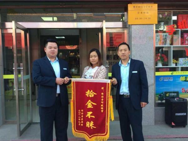9月20日,勉縣同溝寺支局收到了一面印有“拾金不昧”字樣的錦旗,來自勉縣同溝寺鎮(zhèn)同溝寺村名叫李翠的用戶連聲感謝同溝寺支局拾金不昧,讓她的黃金手鏈失而復(fù)得。