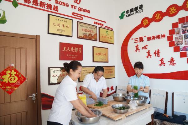 學(xué)習(xí)交流活動(dòng)期間,4位勞模先進(jìn)代表與北極村郵局8位員工同吃同住、跟班作業(yè)、互相溝通。她們每天從早上7:30跟班到晚上10:30多,迅速融入到了北極村郵局這個(gè)集體中。她們用眼睛看到了北極村郵局員工每天工作13個(gè)多小時(shí)。游客多時(shí),大家一同為來(lái)自四面八方的游客提供耐心、細(xì)致和周到的服務(wù),閑暇之余交流工作經(jīng)驗(yàn),暢談人生、理想,憧憬郵政的美好明天。她們用耳朵聽(tīng)到了用戶(hù)們由衷地贊譽(yù)郵政員工的優(yōu)質(zhì)服務(wù),用心感悟到了“創(chuàng)新、協(xié)同、誠(chéng)信、擔(dān)當(dāng)”的郵政企業(yè)精神在北極村郵局體現(xiàn)的淋漓盡致。午間和傍晚,當(dāng)北極村郵局員工因?yàn)槊β禑o(wú)暇做飯時(shí),她們?cè)诼毠ば〖覟榍芭_(tái)服務(wù)的姐妹們包餃子、炒菜、煎韭菜盒子……香噴噴、可口的飯菜讓員工們吃在嘴里,暖在心上。談到這次北極村郵局學(xué)習(xí)交流活動(dòng),支局長(zhǎng)于霞滿(mǎn)懷感激之情:“通過(guò)這次學(xué)習(xí)交流活動(dòng),我也在4姐妹身上看到了很多閃光點(diǎn),我們之間互相交流、取長(zhǎng)補(bǔ)短,共同進(jìn)步,這更加堅(jiān)定了帶好這支隊(duì)伍,把北極村郵局打造成文化名片、精神地標(biāo)的信心和決心?!蓖瑫r(shí),4位勞模先進(jìn)代表去看望了全國(guó)勞動(dòng)模范尹靜,和她一起溝通交流了工作經(jīng)驗(yàn)。