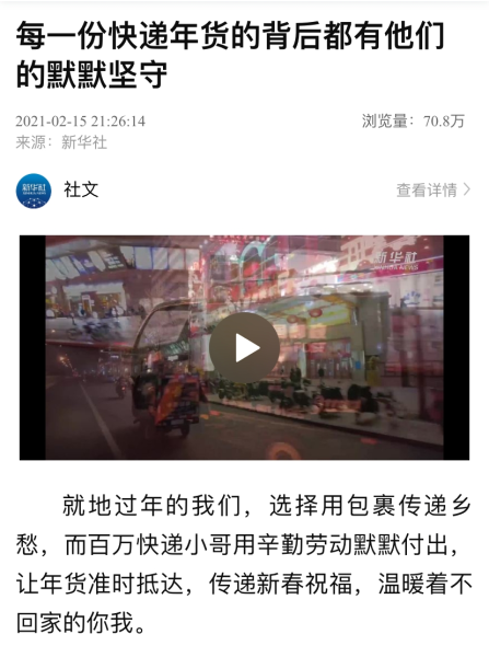春節(jié)期間,北京郵政繼續(xù)堅(jiān)持“春節(jié)不打烊”的傳統(tǒng),為原地過(guò)年的人群做好寄遞服務(wù)。無(wú)數(shù)快遞小哥的新春堅(jiān)守,產(chǎn)生了很多動(dòng)人心弦的故事。為了更好地講好北京郵政故事,北京郵政新聞中心、北京郵政工會(huì)拓寬宣傳渠道、多點(diǎn)開花,做好春節(jié)期間宣傳報(bào)道工作。