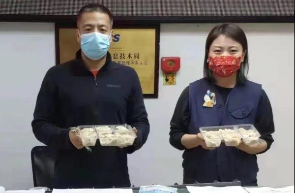 中心局各部門工會為留京過年員工準(zhǔn)備了餃子和豐富的慰問品,在除夕之夜一起包餃子,吃年夜飯,看春晚,共同迎接辛丑牛年新春的到來。除夕晚上,培訓(xùn)中心領(lǐng)導(dǎo)到職工宿舍看望慰問春節(jié)期間留京過年的后勤服務(wù)人員和當(dāng)日值班的同志,向大家送上新春的問候和祝福,對留京人員積極響應(yīng)就地過年號召不返鄉(xiāng),為疫情防控工作做貢獻(xiàn)表示衷心的感謝,大家一起包餃子、吃年夜飯、共渡除夕。信息局工會為除夕當(dāng)天值班的2名運(yùn)行維護(hù)部員工送去年夜飯。實(shí)業(yè)集團(tuán)器材分公司工會開展了“今春佳節(jié)異地歡 抗擊疫情暖人心”主題活動,提前將職工小家布置一新,并為大家準(zhǔn)備了具有北京特色的團(tuán)圓飯。國際分公司、郵航中心工會為留京員工準(zhǔn)備了象征團(tuán)圓的餃子,讓他們感受到在家的溫暖。(北京郵政工會)
