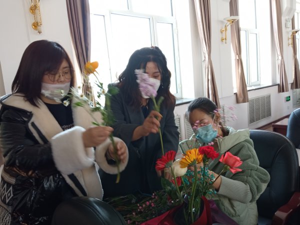 3月8日上午9:30分,七臺河市分公司四樓大會議室洋溢著郵政女職工爽朗的笑聲,來自各機關、專業(yè)等8個部門共計20余人的女職工分成五組參與插花活動。
