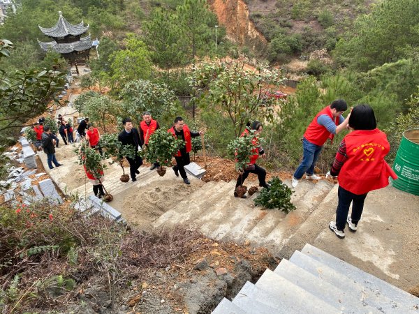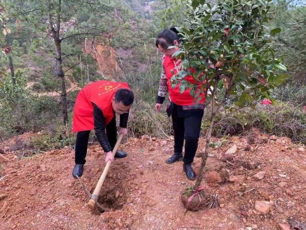 在植樹活動現(xiàn)場,大家自覺組隊,分工協(xié)作,有的揮鍬挖坑,有的扶苗培土,大家穿梭往來,現(xiàn)場一片熱火朝天的勞動景象。