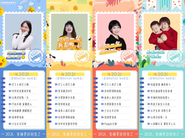 圖為郵儲銀行員工生成的4種“微笑海報”