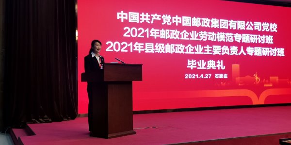 4月27日,在2021年郵政企業(yè)勞動(dòng)模范專(zhuān)題研討班暨2021年縣級(jí)郵政企業(yè)主要負(fù)責(zé)人專(zhuān)題研討班的畢業(yè)典禮上,姜雪晶作為研討班勞動(dòng)模范代表宣讀了《2021年郵政企業(yè)勞動(dòng)模范專(zhuān)題研討班倡議書(shū)》。