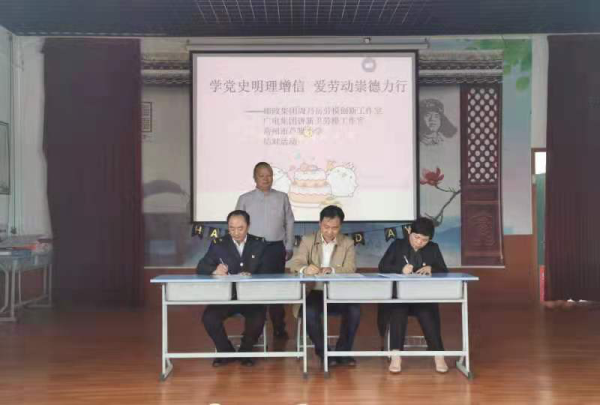 4月28日下午,“學(xué)黨史明理增信、愛勞動崇德力行”勞模工作室結(jié)對進(jìn)校園活動在常州市蘆墅小學(xué)隆重舉行,常州郵政周乃岳勞模工作室和常州廣電唐新衛(wèi)勞模工作室與蘆墅小學(xué)共簽結(jié)對共建協(xié)議。今后兩個勞模工作室將積極發(fā)揮自身優(yōu)勢和特色,助力校方把勞動教育納入人才培養(yǎng)全過程,讓學(xué)生們樹立勞動最光榮、勞動最美麗的觀念,更加熱愛勞動,尊重普通勞動者,形成正確的世界觀、人生觀、價值觀。廣電唐新衛(wèi)勞模為大家播放了自己團(tuán)隊制作的黨史教育微視頻,帶領(lǐng)師生們一起重溫百年黨史光輝歷程;郵政公司周乃岳勞模結(jié)合自身經(jīng)歷談了自己的入黨初心以及如何成長為勞模的心路歷程,對孩子們開展了勞動教育。兩位勞模還為該校30位困難學(xué)子捐贈了裝有學(xué)習(xí)用品的愛心包裹。