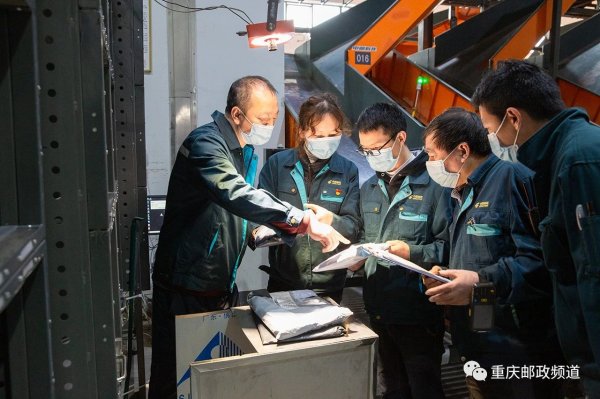 渝北空港,重慶市郵區(qū)中心局處理場地內(nèi),一輛輛綠色郵車往來正酣,自動化皮帶裝置全天候運轉(zhuǎn),分揀作業(yè)人員穿梭其間,加緊將包裹遞向千家萬戶。