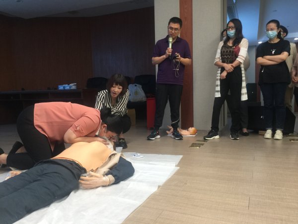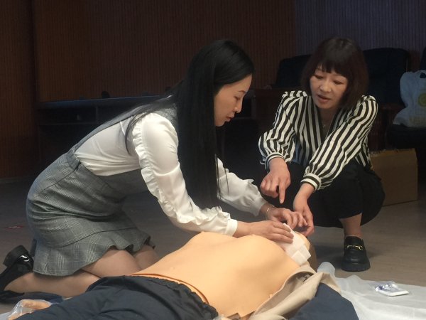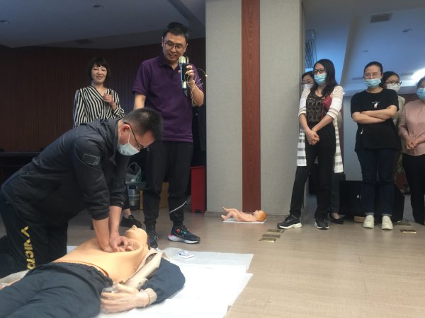 在現(xiàn)場(chǎng)演練教學(xué)環(huán)節(jié),很多學(xué)員自告奮勇,在老師的指導(dǎo)下進(jìn)行了心肺復(fù)蘇和海姆立克急救法演練學(xué)習(xí),紛紛表示效果良好。