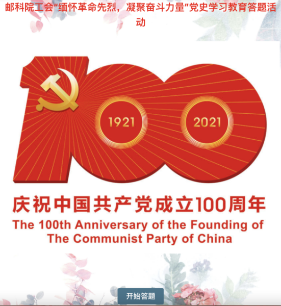 為進(jìn)一步推動(dòng)黨史學(xué)習(xí)教育,學(xué)習(xí)革命先烈的英勇事跡,更好凝聚奮斗力量,郵科院工會(huì)組織了“緬懷革命先烈,凝聚奮斗力量”黨史學(xué)習(xí)教育答題活動(dòng)。全院230余名職工參與答題,掀起了學(xué)習(xí)革命先烈英勇事跡、向革命先烈致敬的高潮。